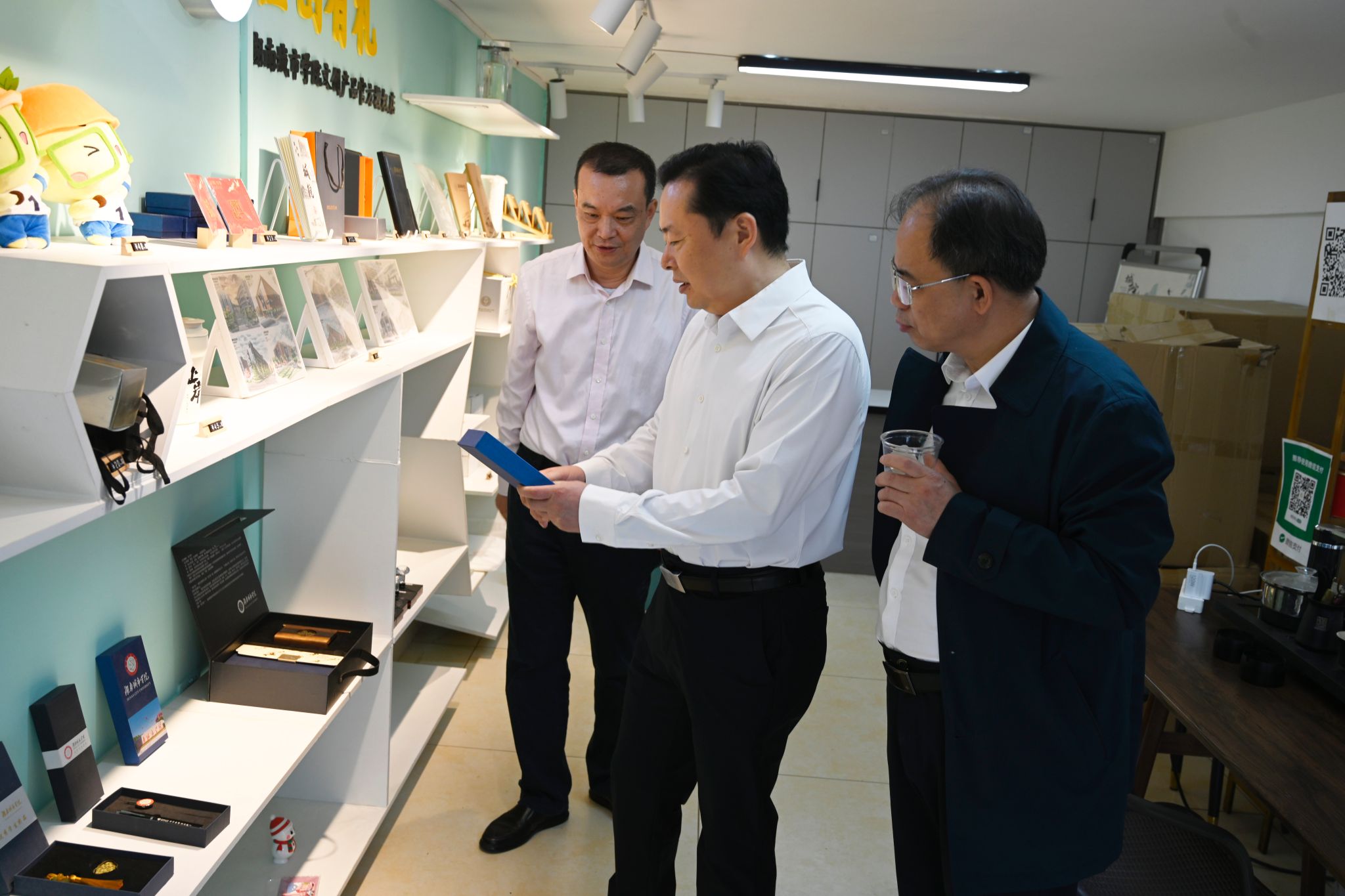 熊炜一行首先来到我校大学生创客中心,参观了创新创业展厅、路演厅、团队工作室和项目咨询室,察看师生创新创业成果展示,充分肯定了我校学子在科技创新方面展现出的专业素养和创造才能。