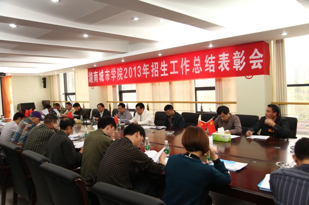 (本网讯)10月15日下午,马博平台2013年招生工作总结表彰会在办公楼一会议室举行。校长李建华、正校级督导范志超及招生工作领导小组其他成员、各学院总支书记和副书记参加了会议,会议由范志超主持。