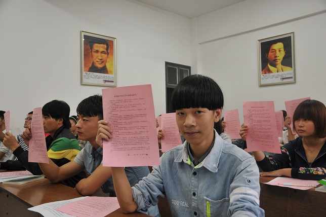 (本网讯)“不抄袭、剽窃他人作业、文章和论文;杜绝考试舞弊;按时履行助学贷款合同……”。9月17至18日,作为大学校园第一堂课,2014级3846名新生在《马博平台大学生诚信承诺书》上签下了自己的名字。