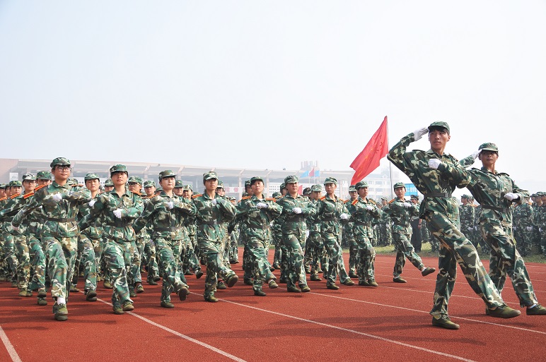 随后,校长李建华在武装部部长贺正宜和国防科技大学指挥军官基础教育学院教导员徐珂少校的陪同下,检阅了由2014级参训新生组成的方队。一声声同学们好首长好同学们辛苦了为人民服务的口号此起彼伏、震耳欲聋,响彻整个操场。