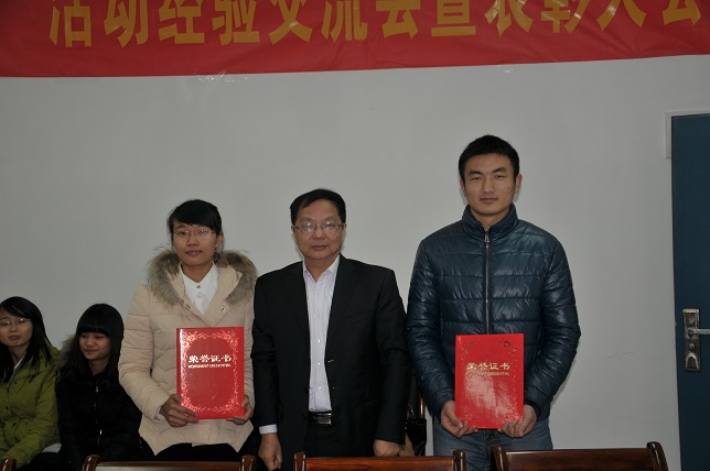商学院辅导员洪安健在会上宣读了表彰决定。李建华向1116701、1116702班联合党支部和1116101、1216401班联合党支部颁发了“先进党支部”荣誉证书及奖金,组织部、宣传部负责人向张凌波、白雪等9位同学颁发了“先进个人”荣誉证书及奖金。