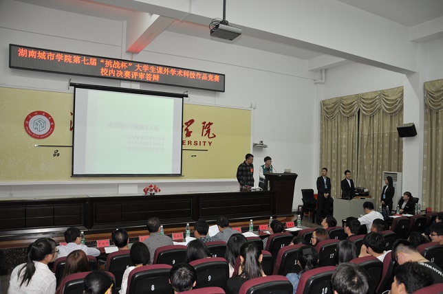 2014年9月下发马博平台第七届“挑战杯”大学生课外学生科技作品竞赛通知以来,学生参赛热情高涨,本届比赛共收到了自然科学类学术论文、哲学社会学类社会调查报告和学术论文、科技发明制作类等三大类作品148件,为我校“挑战杯”竞赛校内申报作品最多的一届。经过前期的专家匿名评审,共有20件作品入围校内评审答辩。答辩会上,参赛团队对各自作品做了详细介绍,评委按照“挑战杯”作品的科学性、先进性、创新性及现实意义等评审要求,对申报作品进行了提问和打分,并针对作品中存在的问题提出了进一步的修改意见。