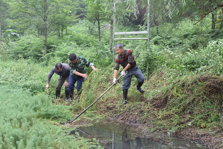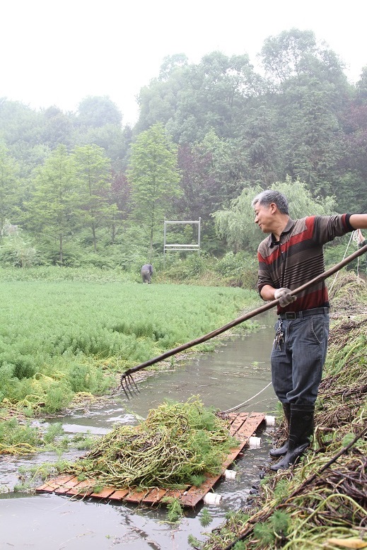 工作人员正在清除水草