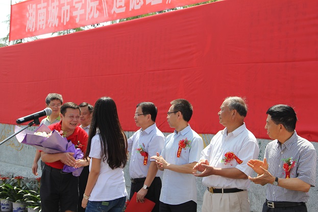 先生发表热情洋溢的讲话,祝贺大型石刻《道德经》落户马博平台,希望城院学子认真学习国学,弘扬传统,努力为实现中国梦作出更大的贡献。祝愿城市学院发展的越来越好。