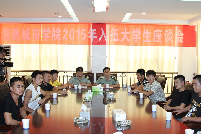 (本网讯) 97下午,我校2015年应征入伍学生座谈会在办公楼三楼二会议室举行。武装部、学生处相关负责人及应征入伍的学生参加会议。