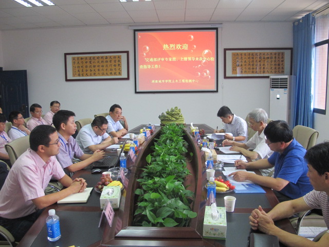 (本网讯) 9 7 ,交通部“公路水运工程试验检测”资质评审专家何玉珊教授(交通部公路科学研究院总工)、王兴奎教授(北京市交通质监局副总工)一行来我校土木工程检测中心复核“桥梁工程检测”、“地基桩基检测”两项资质的换证。湖南省交通厅质监局胡翌刚科长、益阳市交通质监局杨年宏局长、我校副校长郑卫民及产业发展管理处、土木工程学院、土木工程检测中心等单位相关负责人接待了专家组一行。