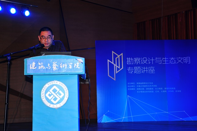 下午,在中南大学新校区建筑与艺术学院音乐厅举行“勘察设计与生态文明”专题讲座,湖南省建筑设计院院长蒋涤非、我校副校长郑卫民、湖南省交通规划勘察设计院副总工胡慧华分别做专题讲座,和大家一起分享工程勘察设计行业的设计理念和实践案例。