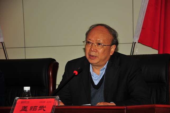 孟昭武致欢迎词,他代表学校师生对各位专家的到来表示热烈的欢迎,并简要介绍了我校在学科建设、专业设置、师资队伍、人才培养等方面的基本情况。