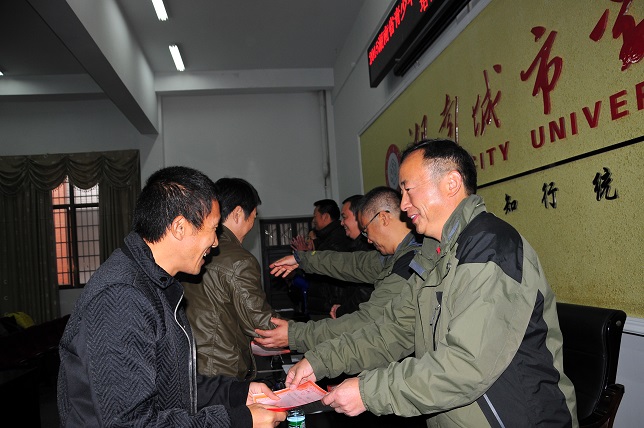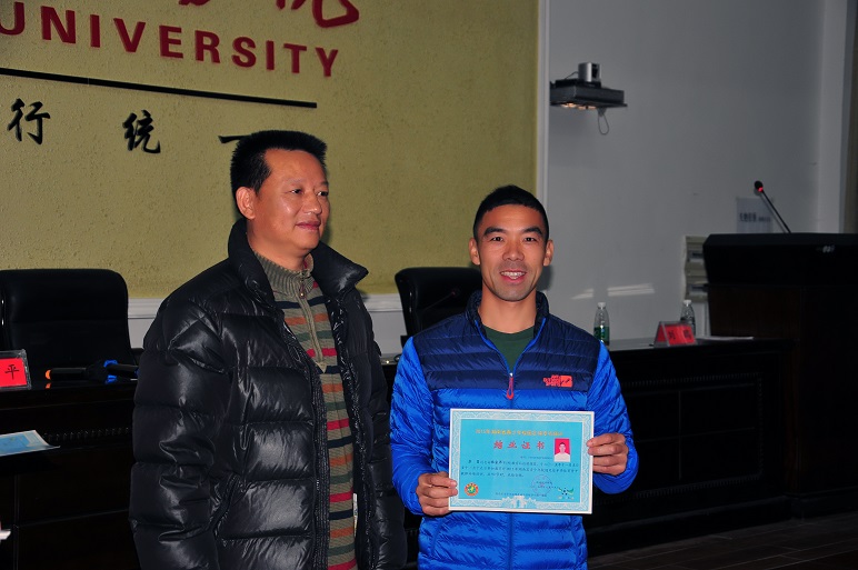雷存喜、唐吉平、熊兴吾、刘鸥、郭羽、李志宏给优秀学员颁发了荣誉证书。体育学院院长唐吉平依次为54位学员颁发结业证书。学员代表向学校赠送了锦旗。