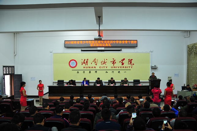 (本网讯) 1119上午,由湖南省教育厅主力,我校体育学院承办的2015年湖南省青少年校园足球中学骨干体育教师专项培训班在视频会议室举行了结业仪式。首批54名中学体育教师完成了足球相关课程的培训,获得结业证。学校教务处、体育学院相关负责人出席了结业典礼。