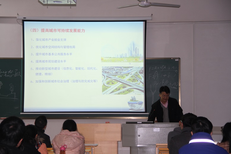 教授在建筑规划楼202教室,以“城市规划与建设的热点问题”为题,为即将参加考试的建筑与城市规划学院学子上了一堂考研辅导课。