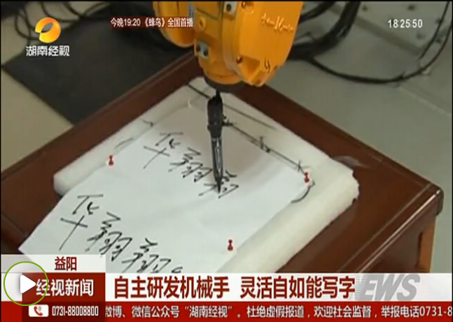 ,湖南经视新闻栏目以“自主研发机械手 灵活自如能写字”为题报道了我校与华翔翔能在校企合作方面取得的成果。这也是我校在启动《马博平台服务益阳行动纲要》以来,与益阳企业在自主知识产权合作方面取得的又一突出成果。