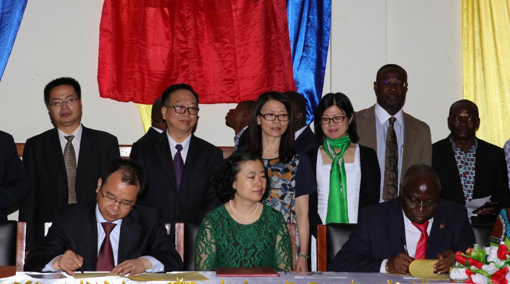 在大使孙保红和加纳文化旅游部长伊利莎白见证下,校长李建奇与海岸角大学校长库珀尔教授共同签署了《关于合作建设海岸角大学孔子学院的执行协议》。
