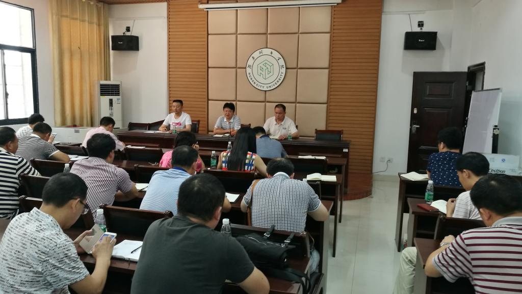 (本网讯)6月23日,我校在第二办公楼303会议室召开了招生宣传工作部署与人员培训会,副校长汤放华,各学院党总支副书记,部分招生宣传小组负责人,招生就业处全体工作人员参加了会议。会议由招生就业处处长汪佑民主持。