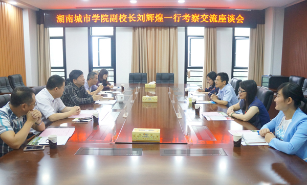 (本网讯)6月28日上午,副校长刘辉煌率国际交流处全体人员赴湖南文理学院考察国际教育合作与交流等有关事项。湖南文理学院党委副书记龚卫明、国际交流处处长胡芳毅、国际学院院长梅晓勇等一行在逸夫楼会议室接待了刘辉煌一行。