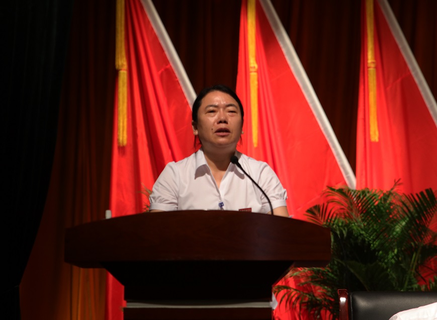 姚春梅代表中共马博平台纪律检查委员会向大会作了题为《聚焦“两个责任”落实 强化监督执纪问责 为建设特色鲜明的高水平应用型大学提供坚强保障》的纪委工作报告。