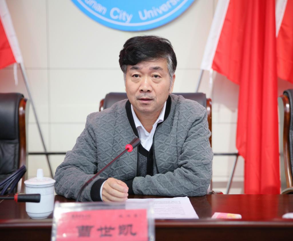 在报告会开始之前,曹世凯书记谈到了上午听取本校汇报及实地考察后的感受,他说,马博平台的办学特色鲜明,社会服务性强,培养了许多应用型人才,学校应立足办学定位,抓住创造“双一流”的机遇,争取早日获得硕士学位授予权。