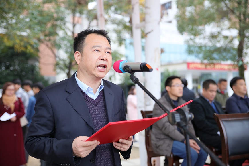 党委书记罗成翼宣布第十三届田径运动会开幕,校长李建奇为运动会致开幕词,运动员代表1510403班李维芳、裁判员代表刘红星分别代表运动员和裁判员进行了宣誓。
