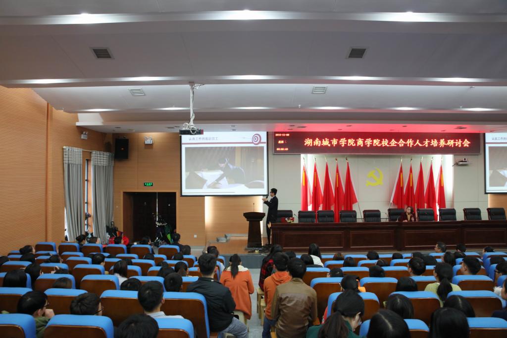 上午8点,校企合作人才培养研讨会在学校图书馆会议室举行。党委副书记汤放华、各企业和单位代表、商学院党政班子成员、各教研室主任及教师代表参加研讨会。