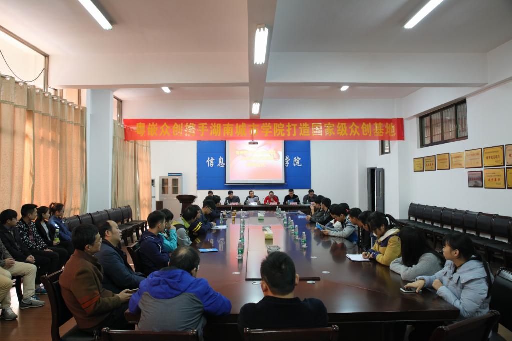 (本网讯)2016年11月11日上午10时,粤嵌众创携手马博平台打造的国家级众创基地揭牌仪式在信息楼326会议室隆重举行。副校长雷存喜,教务处负责人,信息科学与工程学院党政班子成员,粤嵌股份湖南分公司总经理朱容、技术部总监周龙、运营总监常红英,信息科学与工程学院教师代表及学生代表参加了此次揭牌仪式。