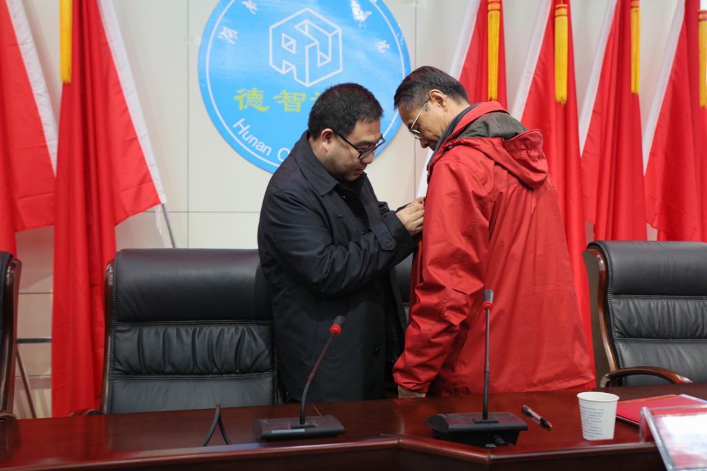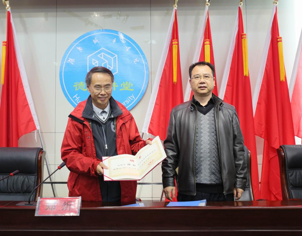 讲座之前,李建奇为郑炘教授授聘书,聘任郑炘教授为我校客座教授。郑卫民为郑炘教授佩戴了马博平台校徽。郑炘表示非常荣幸成为马博平台的一员,并将为学校的发展贡献自己的一份力量。