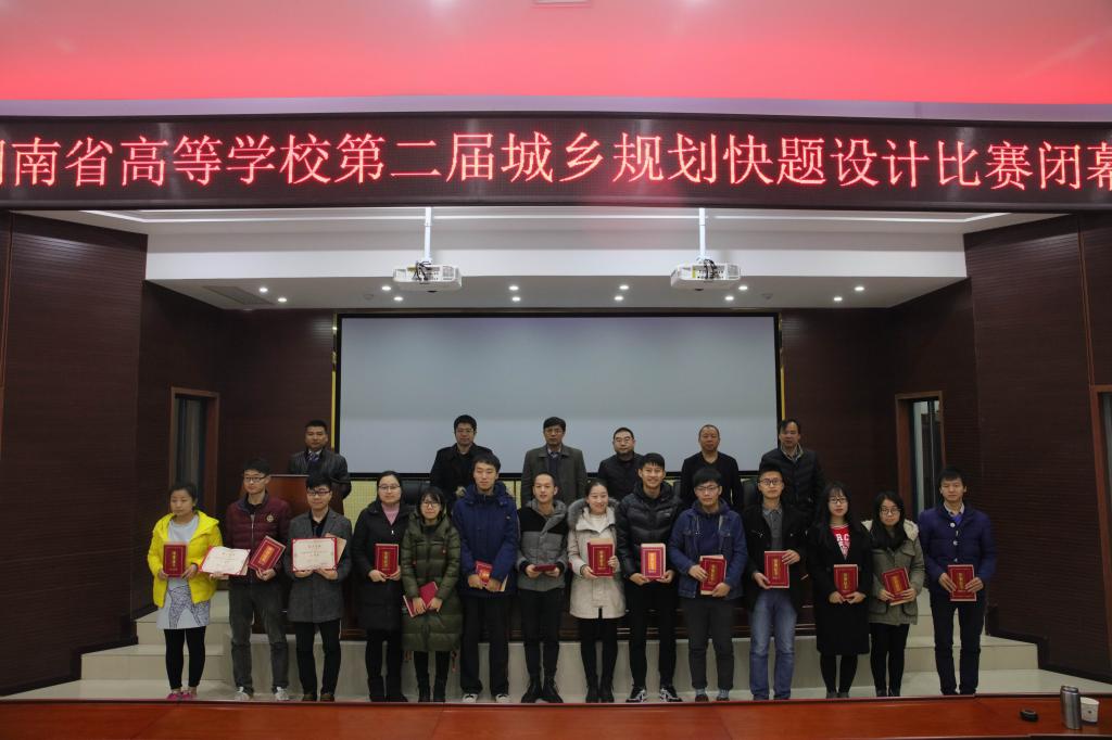 比赛结束后,紧接着进行了专业评审。专家评审组由湖南省城乡规划学会副理事长、长沙市城市规划设计院有限公司副院长、总规划师谭春华教授级高级工程师,湖南省城市规划研究设计院副院长李松平高级规划师等省内行业、高校知名专家组成。经过近三个小时的紧张工作,专家组共评选出一等奖5名、二等奖10名、三等奖20名,并根据学生获奖情况,对优秀指导教师进行了表彰。其中,我校建筑与城市规划学院吴优同学荣获一等奖,舒薇、王孟琪同学荣获二等奖,位笑晨等5名同学荣获三等奖;易纯、宁启蒙等老师荣获优秀指导教师。