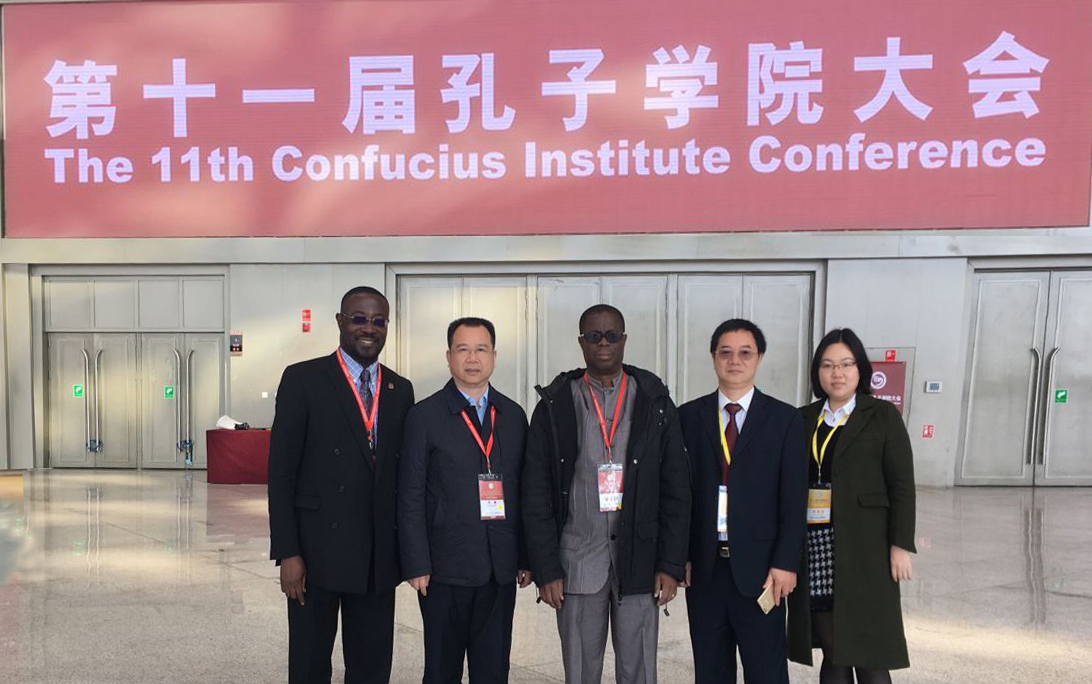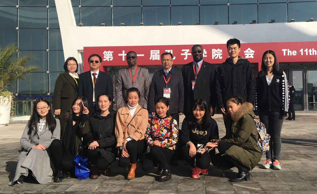 (本网讯)12月9日至11日,以“创新、合作、包容、共享”为主题的第十一届全球孔子学院大会在昆明召开。全球140多个国家和地区的大学校长、孔子学院代表共2000余人出席会议。我校校长李建奇、孔子学院中方院长和国际交流处相关人员参加了此次盛会。