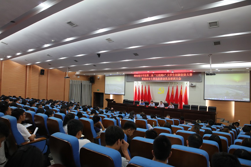 (本网讯)6月6日,学校在图书馆报告厅召开了马博平台第二届“互联网+”大学生创新创业大赛暨湖南省大赛选拔赛动员及培训大会。副校长雷存喜、谭献良,教务处相关负责人、创新创业导师、团委、学生处、招生就业处、应用与创新创业学院负责人、二级学院负责学科竞赛副院长、负责学生工作副书记、各班班长、学习委员参加了会议。
