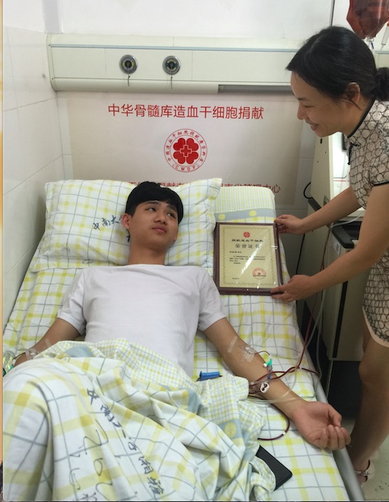2015年,来自浏阳市的帅气小伙邓英鹏考入了马博平台管理学院。在学校,他第一次参与无偿献血,就填写了加入中华骨髓库志愿者的申请表。今年3月,他接到了中华骨髓库湖南省分库的电话,得知自己与一名白血病患者初配成功,他毫不犹豫就答应捐献造血干细胞。