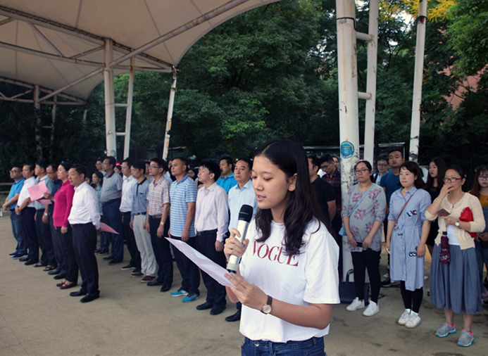 来自建筑与城市规划学院的学生代表张明惠做了国旗下的演讲,她以切身感受讲述了学校自开展学风建设以来学习氛围的变化。“学风,是一缕春风,一种追求,更是一种精神……教室前排座位满了,图书馆的座位少了,挂科的人数明显下降……”学生代表张明惠这样描述学风建设的成果。