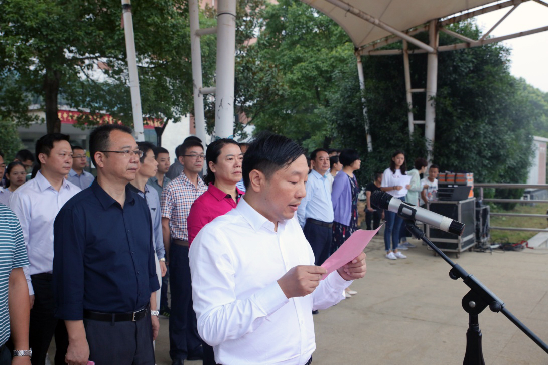 校长李建奇发表讲话。他指出,在党的十九大即将召开之际,学校举行升国旗仪式,弘扬伟大的爱国主义精神,意义重大。我校自开展“三风三力”改革以来,在教风和学风建设上已取得了阶段性成果,但仍然存在四级通过率较低、考研率较同类院校明显偏低等不足。他给所有学子提出了三点希望:一是秉持赤子情怀,爱党爱国爱校,承担起新时期的历史使命;二是投身创新创业,求真求实求新,成为助推时代发展的弄潮儿;三是保持昂扬风貌,敢想敢做敢拼,做引领社会风尚的青春榜样。他强调,当前学校正致力于三件大事:确保高水平通过本科教学审核评估,力争专业硕士点突破和尽最大努力促进医学类学科并入我校,希望同学们勤奋学习,全面成长,以优良学风向党的十九大献礼!