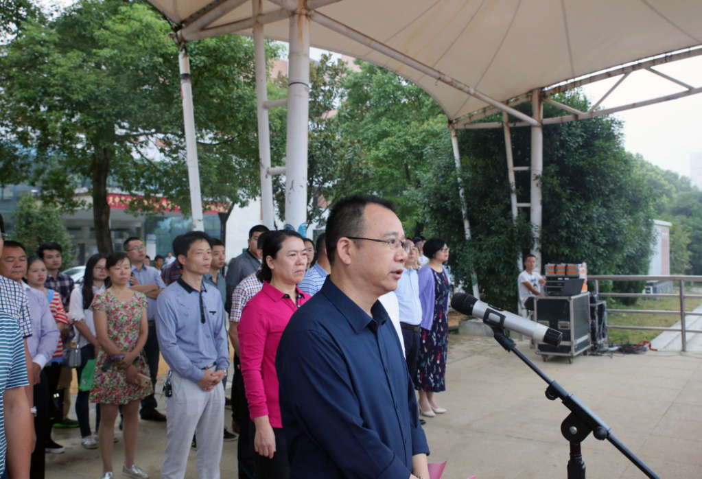 (本网讯)2017年9月6日清晨,我校举行新学期首次升旗仪式。校长李建奇,党委副书记汤放华,副校长夏宏宇,纪委书记姚春梅,副校长郑卫民、谭献良出席出席仪式,学校德育工作小组成员、各二级学院党委(党总支)书记、副书记、辅导员、班主任及4千余名学生参加了升旗仪式。升旗仪式由谭献良主持。