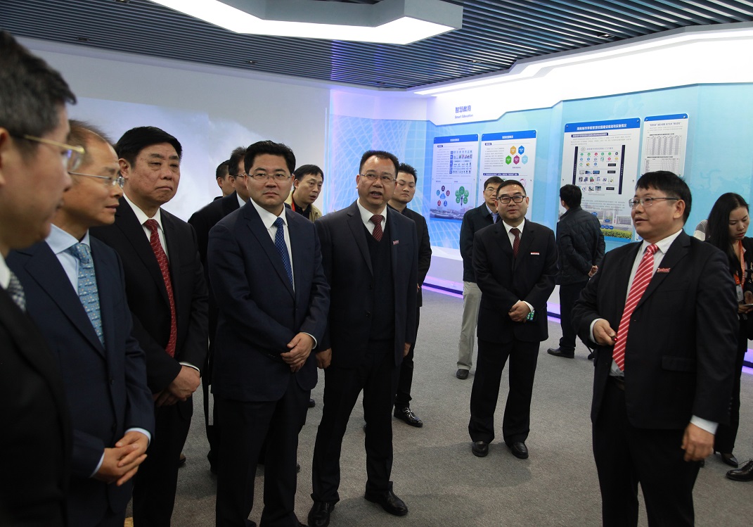 签约暨揭牌仪式前,与会领导嘉宾参观了华为公司对接益阳智慧城市建设成果和马博平台智能工程研究成果展,听取了党委书记罗成翼对学校“十三五”发展规划和改革发展情况介绍,观看了学校特色发展记录片。张峰、隋忠诚、徐直军对学校改革发展所取得的成绩和办学特色给予充分肯定,希望学校加强新型智慧城市研究,为地方经济社会的发展做出更大的贡献。