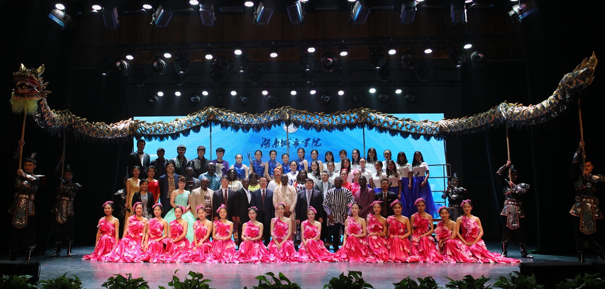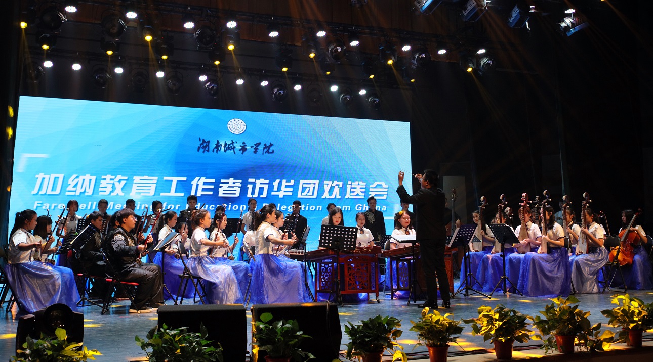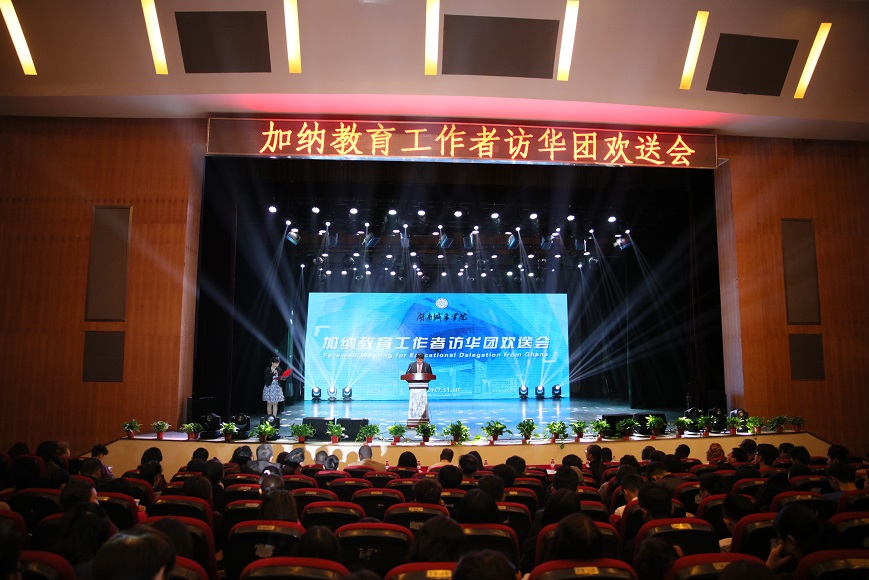 (本网讯)11月10日下午,学校在音乐厅为圆满完成交流任务,即将启程回国的加纳教育工作者访华团举行了隆重的欢送会。加纳教育工作者访华团全体成员,校领导罗成翼、李建奇、汤放华、刘辉煌与400余名师生出席了欢送会。欢送会由校长李建奇主持。