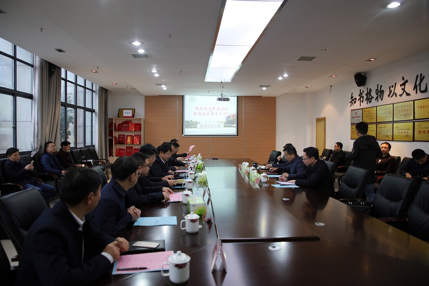 瞿海一行听取学校情况介绍