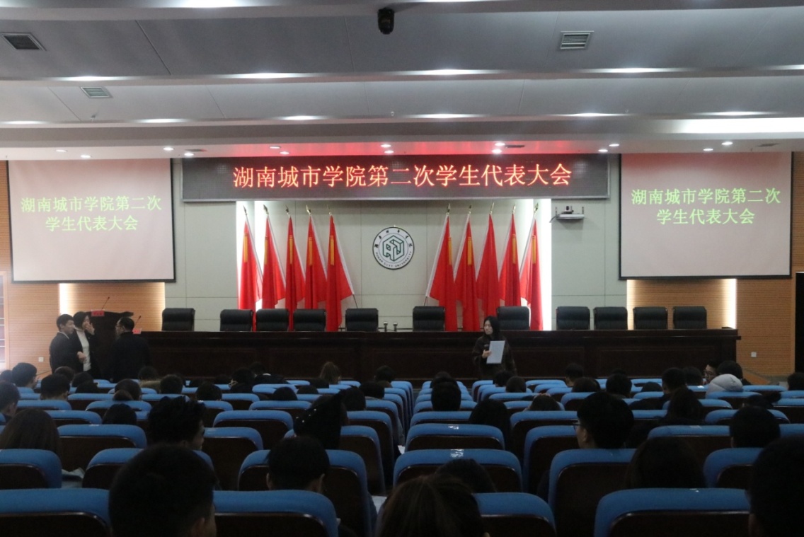 (本网讯)12月10日,我校第二次学生代表大会在图书馆报告厅举行。副校长谭献良,学生工作部负责人、校团委全体成员以及各二级学院分团委书记出席会议,来自全校各学院近三百名学生代表参加会议。