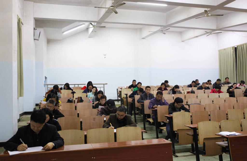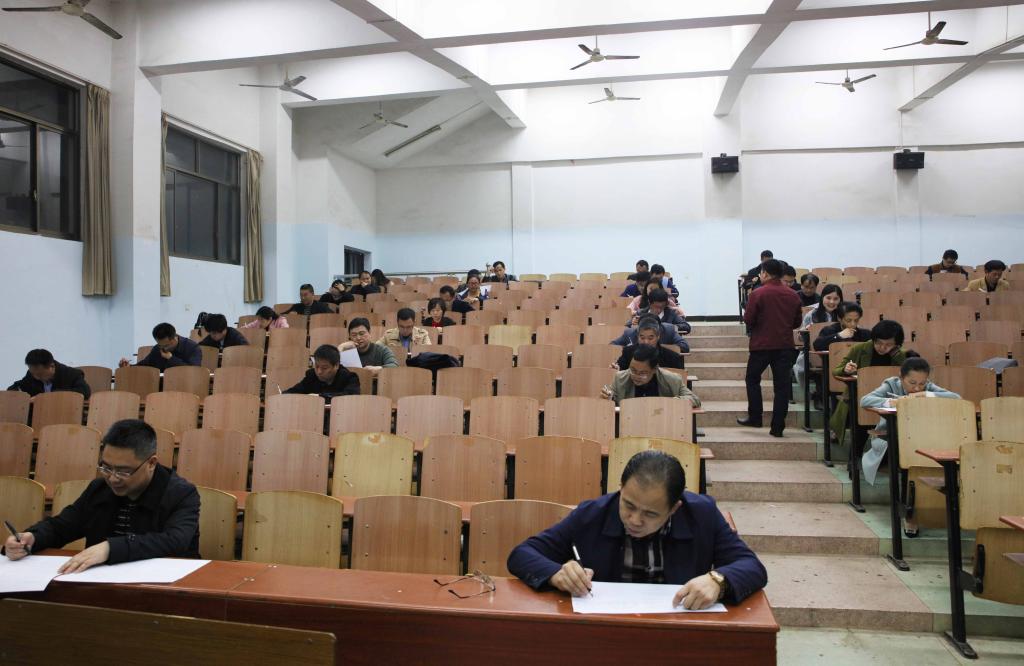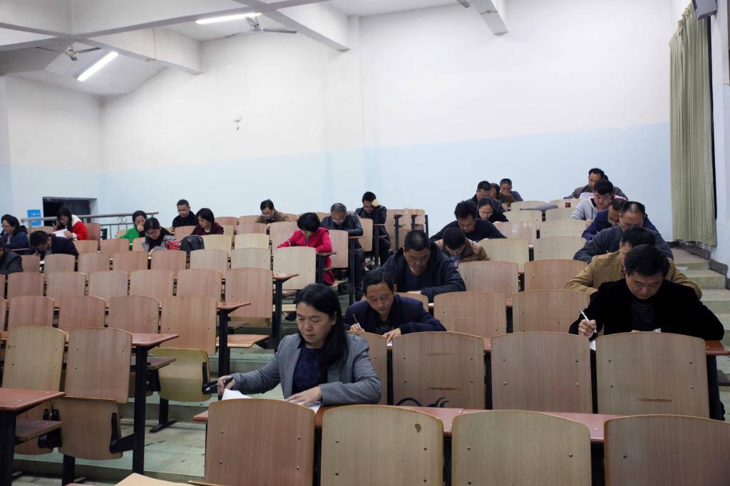 本次考试内容包括了十九大报告、审核评估、教学工作和学生工作等相关知识,一律采取闭卷方式答题。为确保考试效果,教学质量监控与评估中心提前下发了考试通知和学习资料,并对评建知识考试进行广泛宣传,引导全体教职工积极学习审核评估相关知识。本次考试分两批进行,3月13日晚和16日晚,校领导、职能处室全体教职工和二级学院全体教职员工分别进行了评建知识考试。考试期间,校党委书记罗成翼、党委副书记汤放华、副校长雷存喜进行了巡考,并于考前对考场纪律作了严肃要求。