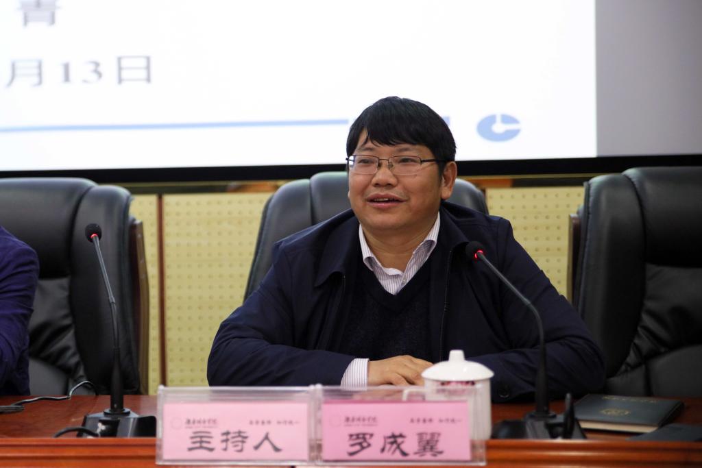 (本网讯)4月13日下午3:10,德智讲堂第二十五讲在建规楼学术报告厅开讲。南华大学党委书记王汉青教授应邀来校,以“中外高校对比与高校内部治理”为题作了一场生动的辅导报告。在家的校领导出席了报告会,机关处室科级以上干部、二级学院书记和院长参加了报告会,会议由党委书记罗成翼主持。