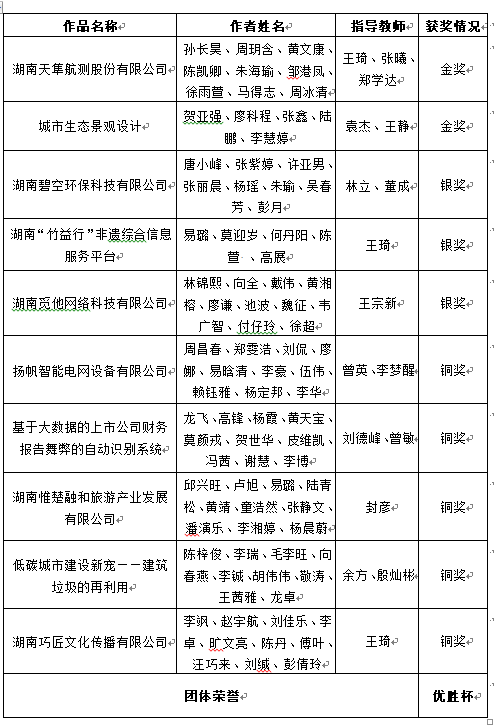 第八届“创青春”湖南省大学生创业大赛终审决赛我校获奖清单