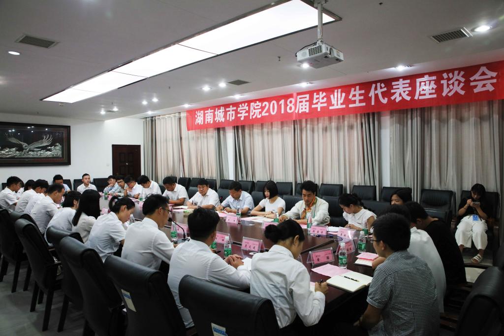 (本网讯)6月12日下午,我校2018届毕业生代表座谈会在图书馆一楼会议室召开。学校党委书记罗成翼、副校长谭献良以及相关机关职能部门主要负责人出席会议,26名2018届毕业生代表参加本次座谈会。座谈会由谭献良主持。
