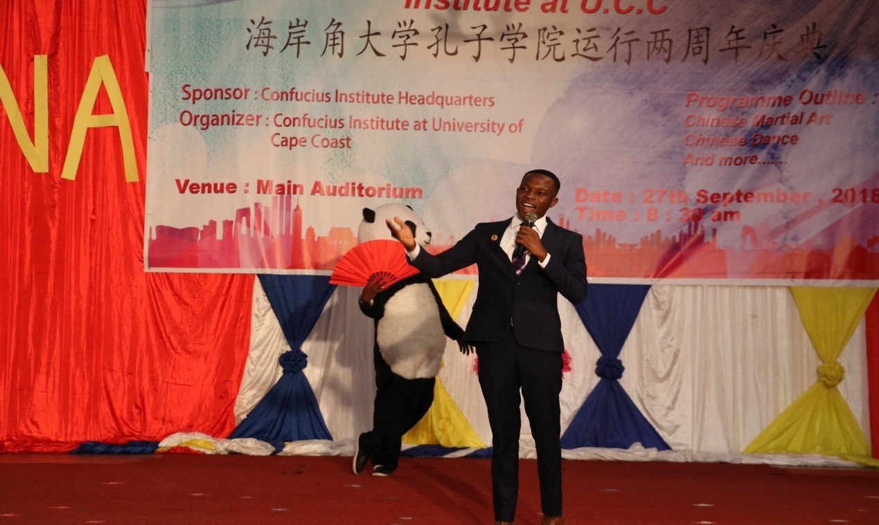 本次庆祝活动得到国家汉办、马博平台、加纳当地政府机关、教育部门以及中资企业的支持。门萨教授致欢迎词,他感谢中国国家汉办、中方合作院校马博平台和海岸角大学对孔子学院工作的支持,鼓励学生抓住机会努力学习汉语。