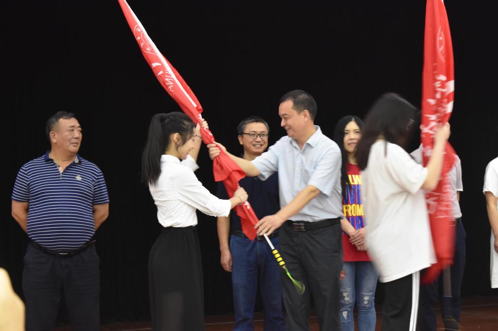 校团委副书记刘劲宣读了我校2019年“青春心向党,建功新时代”大学生志愿者暑期“三下乡”社会实践团队的立项通知,学生志愿者代表段绪崎、指导教师代表王锋娟分别发言,承诺将全力以赴,力争高水平完成各项实践任务学生志愿者代表何炜轩带领全体志愿者庄严宣誓。随后,与会领导为社会实践服务队授旗并合影留念。