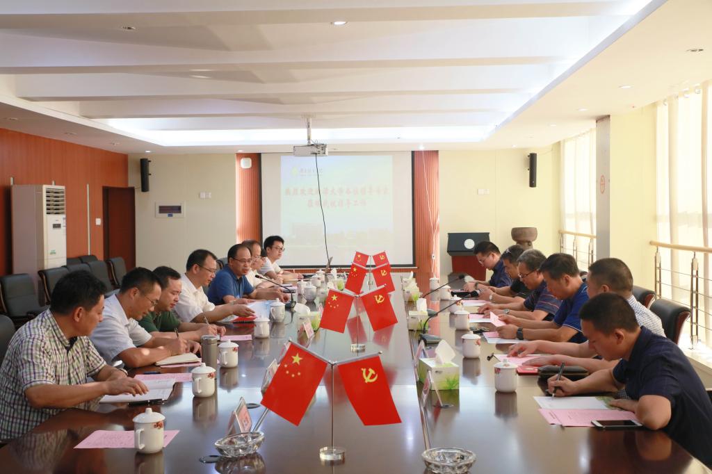 (本网讯)2019年9月5日,湘潭大学研究生院院长王先友一行6人来我校考察交流并开展研究生招生宣传工作。校长李建奇、副校长何振以及相关部门负责人热情接待了王先友一行,双方在一办公楼一会议室召开了座谈会。座谈会由何振主持。