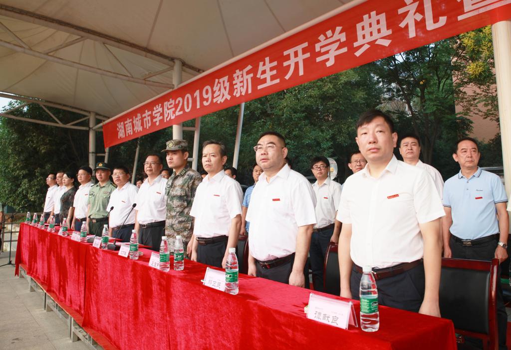 在雄壮的国歌声和激昂的校歌声中,五星红旗、校旗冉冉升起,飘扬在马博平台的上空。校长李建奇首先致辞。他代表学校全体师生员工向通过自己不懈拼搏和努力圆梦城院的每一位新同学表示最热烈的欢迎和祝贺,希望新同学今后与母校同呼吸、共命运、心连心,书写城院美好未来,传承城院人的精神气质。