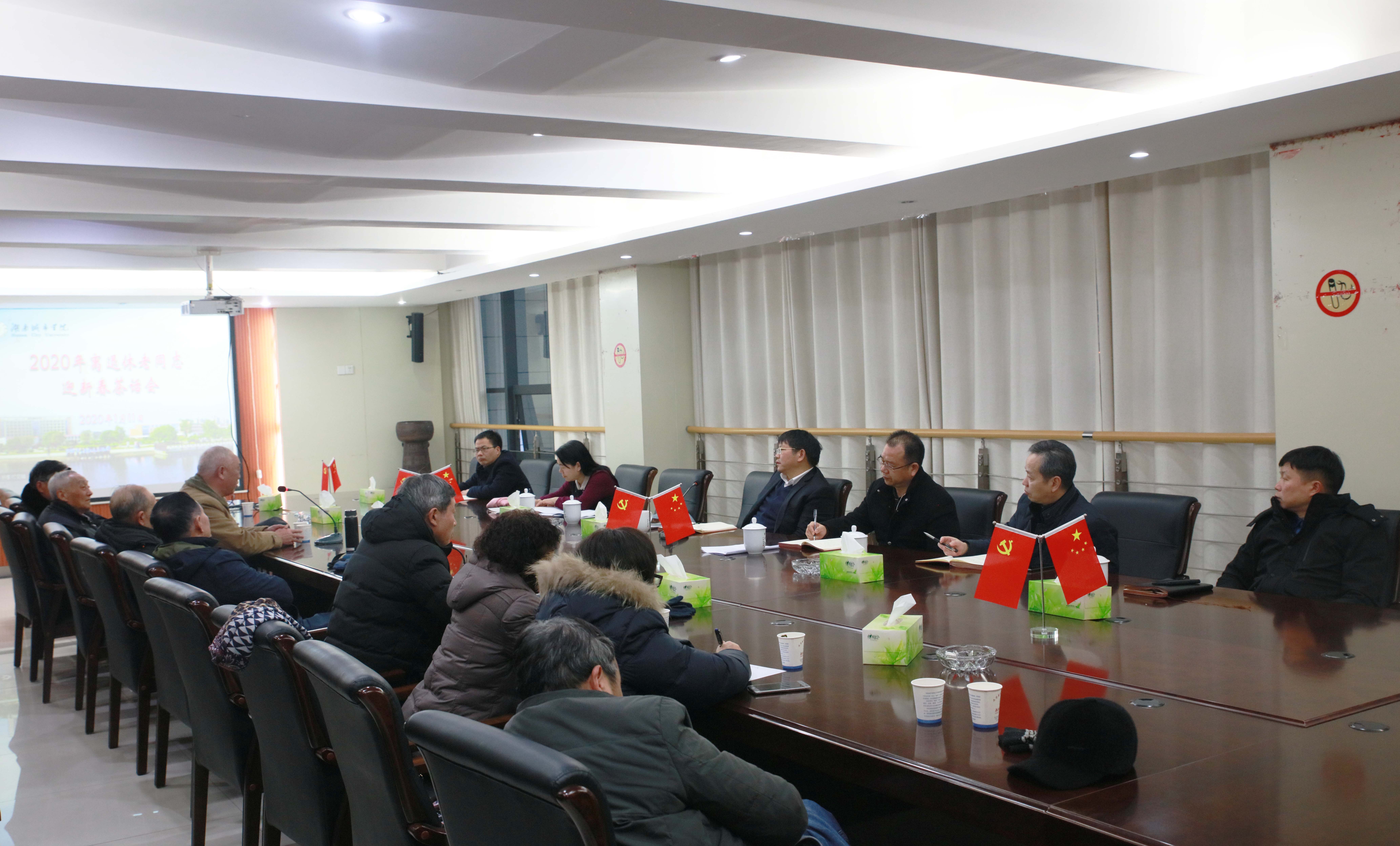 (本网讯)2020年1月11日,我校离退休老干部春节茶话会在办公楼一会议室举行。学校党委书记罗成翼、校长李建奇、副校长夏宏宇、纪委书记姚春梅、党委委员李斌、袁志成与我校老同志代表20余人欢聚一堂,喜迎新春佳节,共商学校发展大计。会议由罗成翼主持。