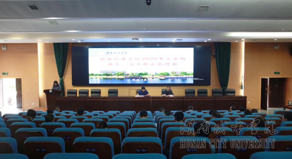 本网讯  2020年5月13日下午,我校在图书馆报告厅召开2020年春季学期教务、学工联合大例会。党委书记罗成翼,校长李建奇,副校长夏宏宇、郑卫民、雷存喜出席会议。各二级学院党委(总支)书记、副书记、院长、教学副院长,教务处、学生工作处、招生就业处、团委、教学质量监控与评估中心等部门负责人参加会议。会议由罗成翼主持。