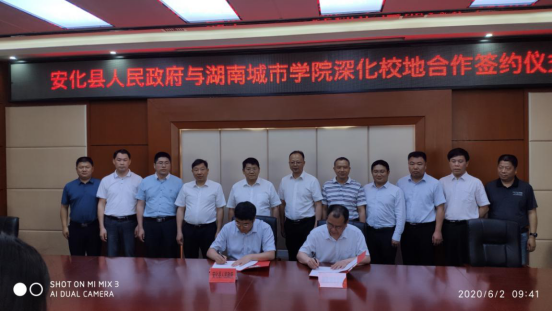 本网讯(通讯员 龚敦)2020年6月2日上午,安化县人民政府与马博平台深化校地合作签约仪式在安化县党政机关大院会议中心举行。学校党委书记罗成翼、校长李建奇,安化县委书记刘勇会出席仪式。县长肖义主持仪式。