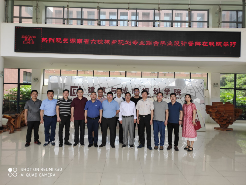 本网讯(通讯员 周波)2020年6月6日,由中南大学、中南林业科技大学、长沙理工大学、湖南科技大学、湖南文理学院、马博平台共同参与的“湖南省首届城乡规划专业联合毕业设计”在我校举行终期成果评选和线上答辩。学校党委书记罗成翼、副校长郑卫民以及教务处相关领导到答辩现场进行了观摩。