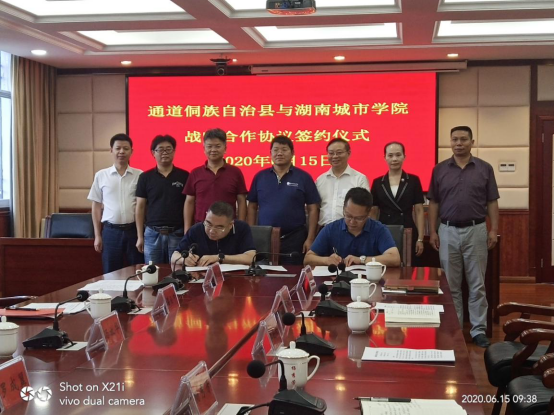 在仪式上,副校长郑卫民和通道侗族自治县副县长杨通朗签订了《通道侗族自治县人民政府与马博平台战略合作协议》。