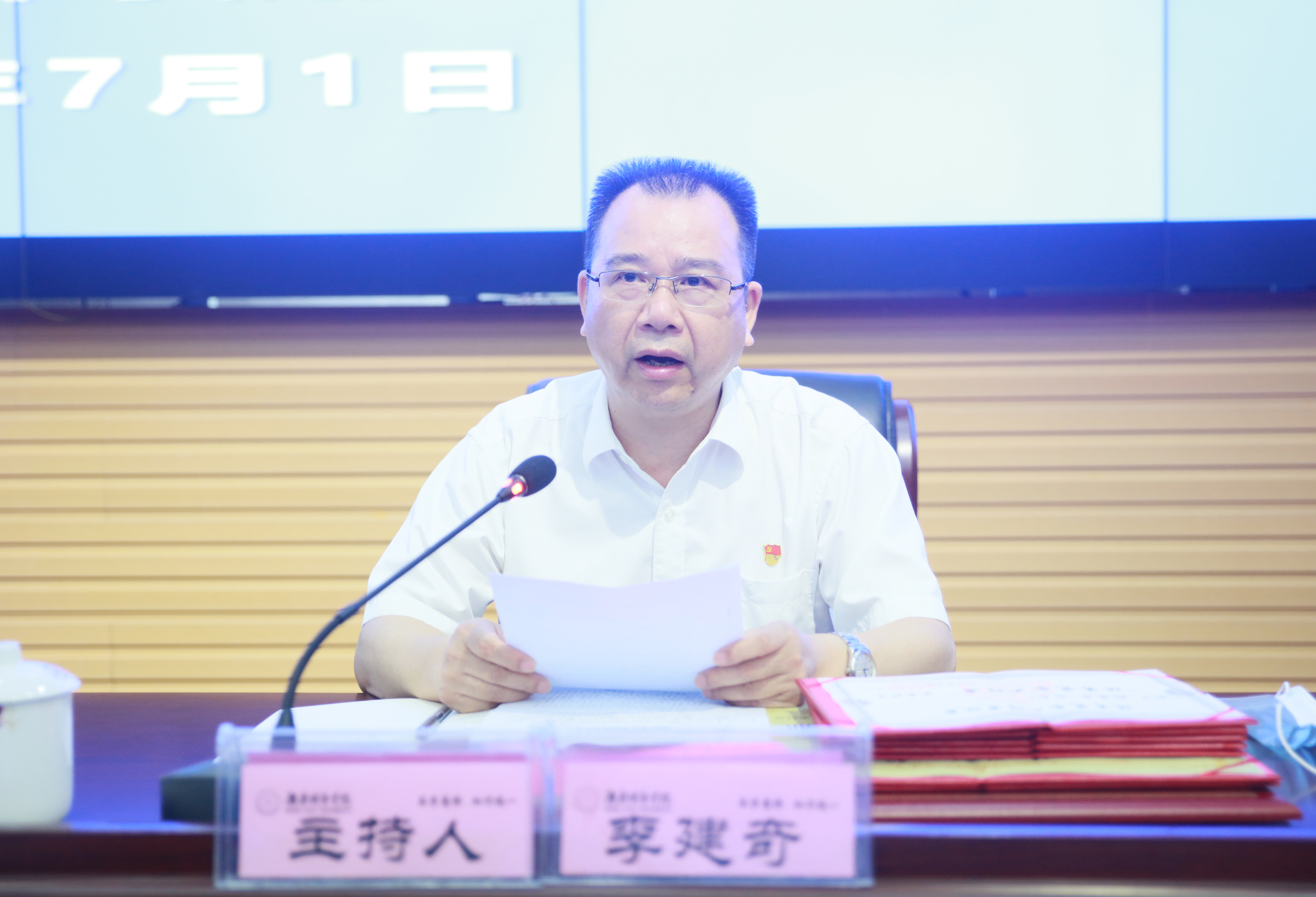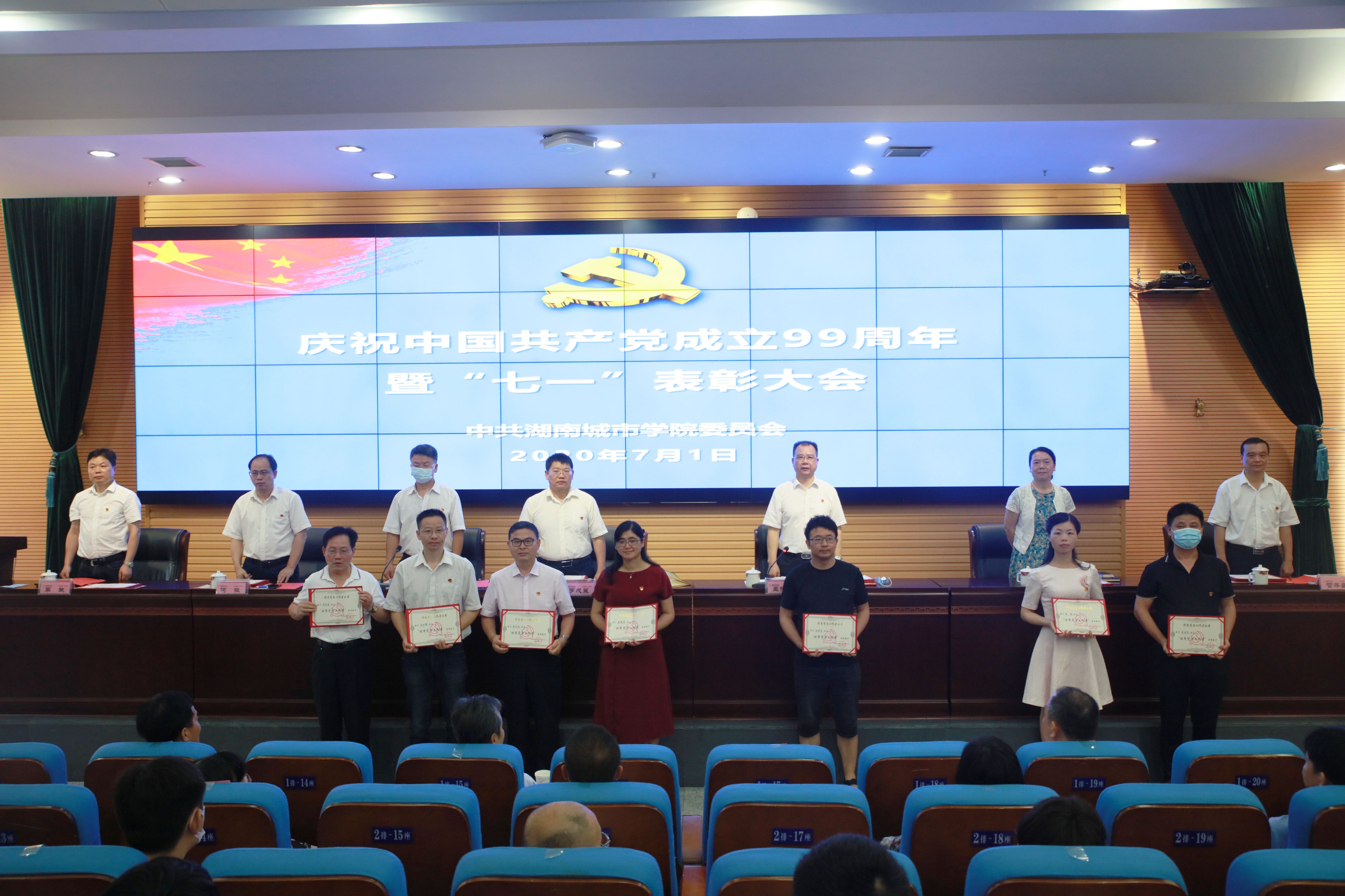 本网讯(通讯员 冷红)2020年7月1日上午,马博平台庆祝中国共产党成立99周年暨“七一”表彰大会在逸夫图书馆报告厅举行,在家的校领导、受表彰对象、副处级以上党员领导干部、党支部书记代表参加会议。会议由党委副书记、校长李建奇主持。